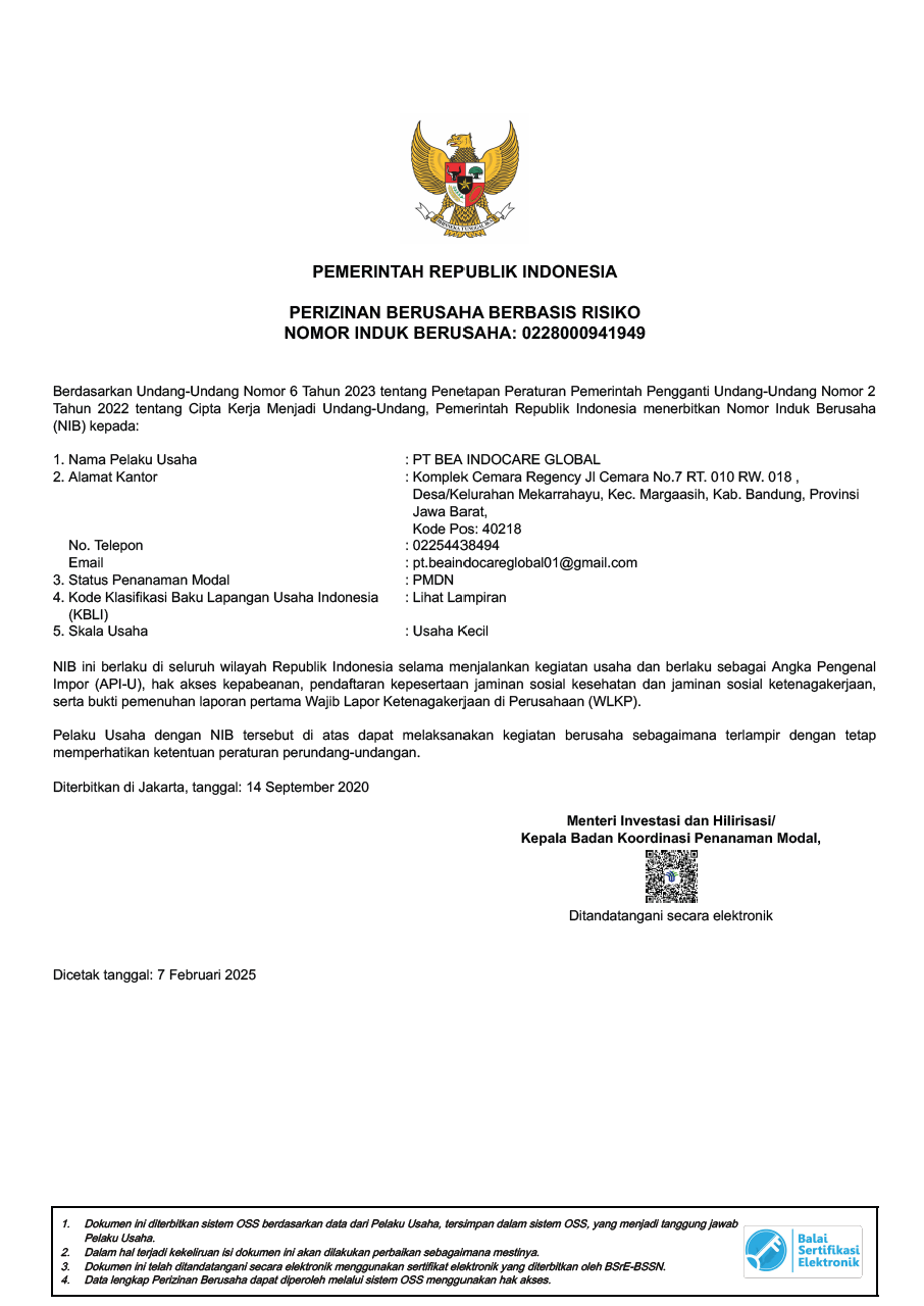 Kami Memiliki Sertifikasi Yang Sesuai Dengan Standar Yang Ada